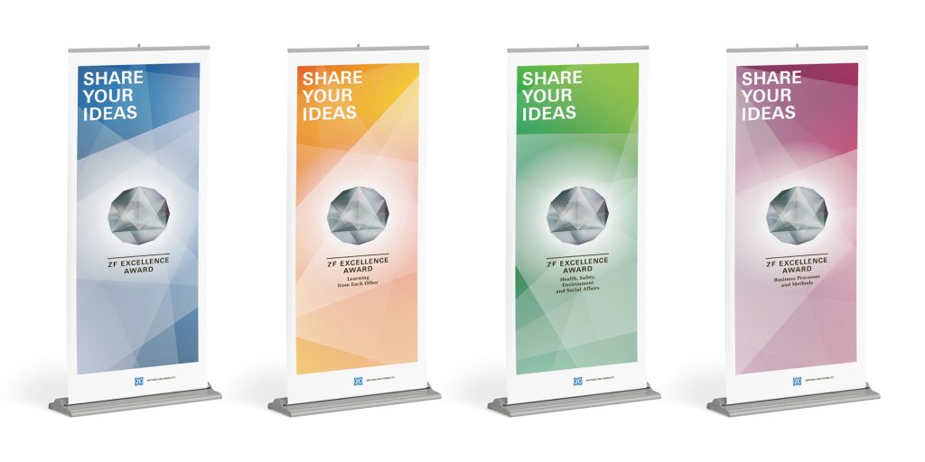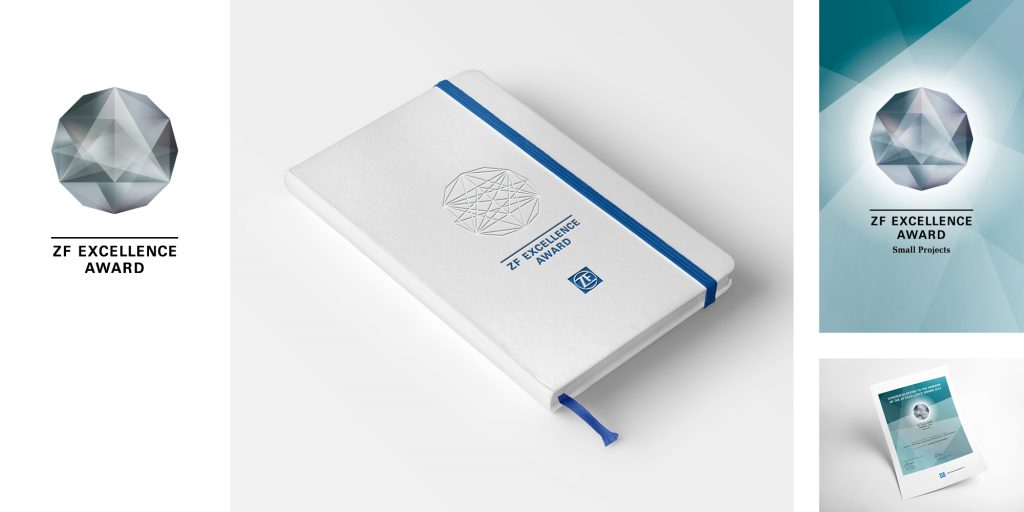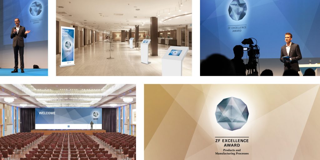 Jedes Jahr schreibt ZF Friedrichshafen einen weltweiten Projektwettbewerb mit fünf Kategorien für die Mitarbeiter aus. Die Gewinner werden im Rahmen einer Galaveranstaltung geehrt. Für die Veranstaltung wurde ein CD entwickelt und in diversen Anwendungen umgesetzt.
